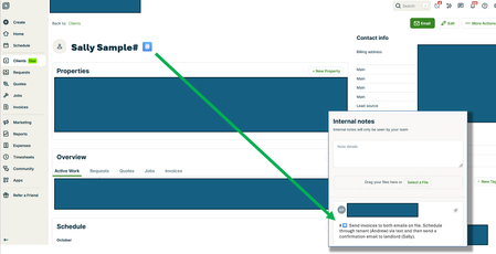 - If it's a recurring visit, we edit job instructions to read "See notes 📝"
